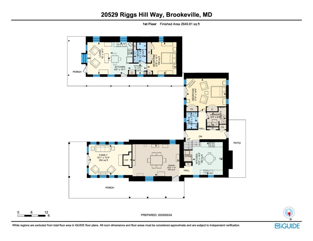 Landing 12′ x 6′ – Wood floor, recessed lighting, 1 window, door to porch, stairs to third floor.