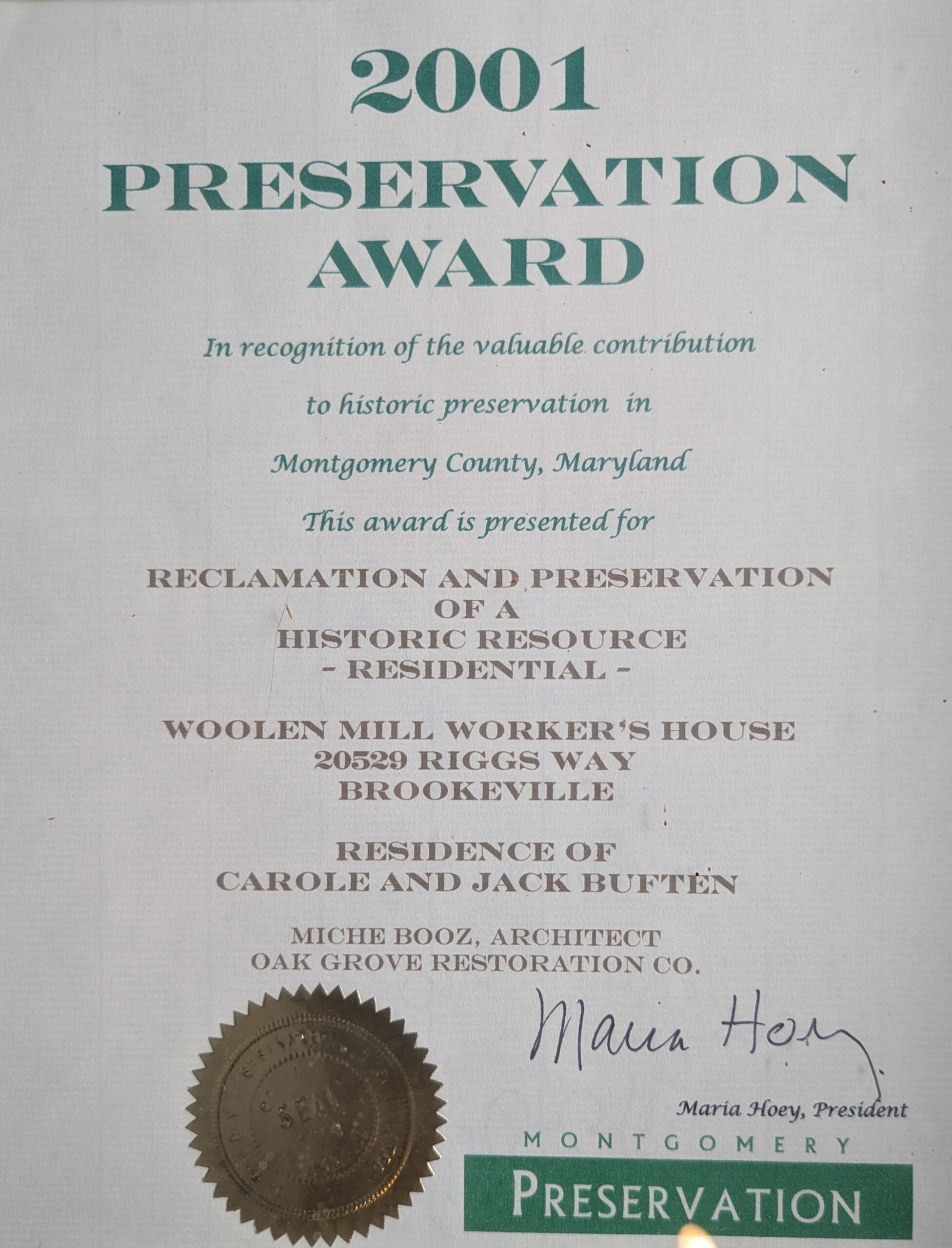 Miche Booz Architect – Brookeville Woolen Mill Worker’s House Restoration